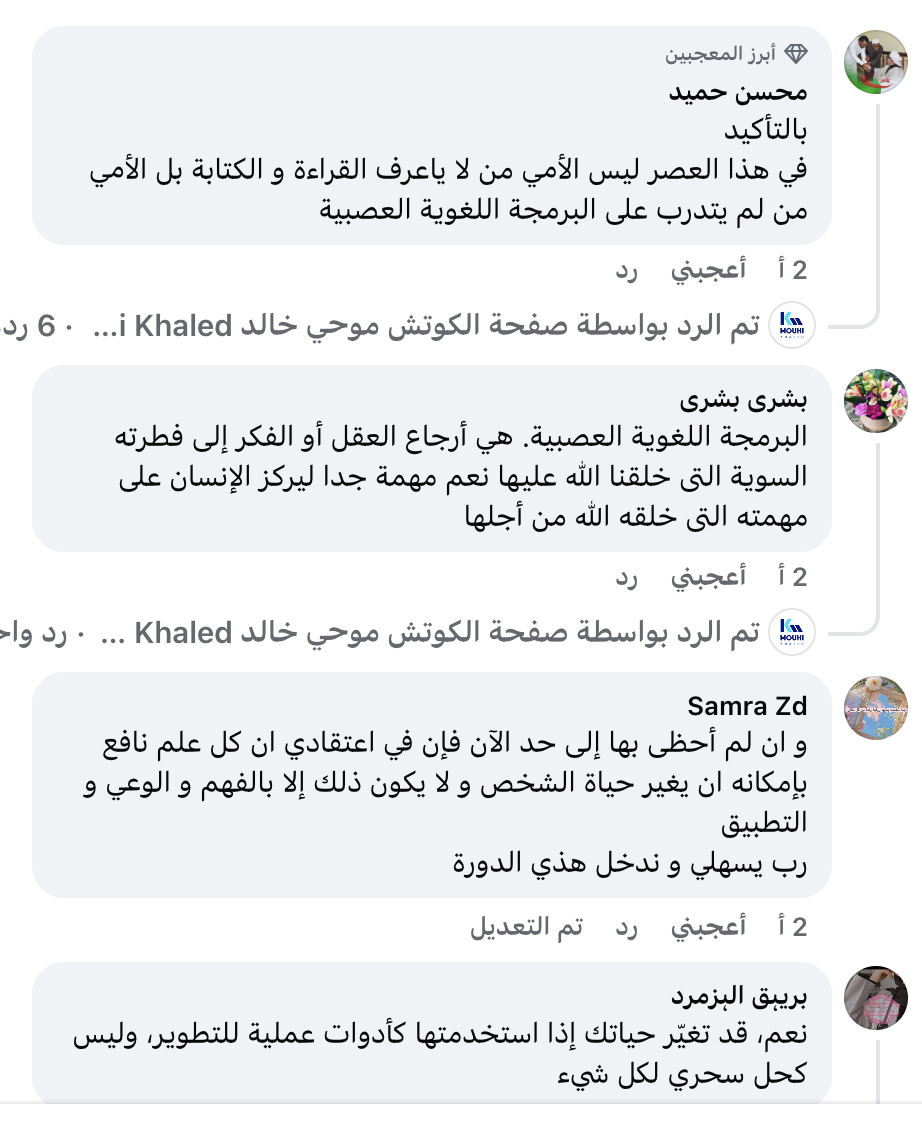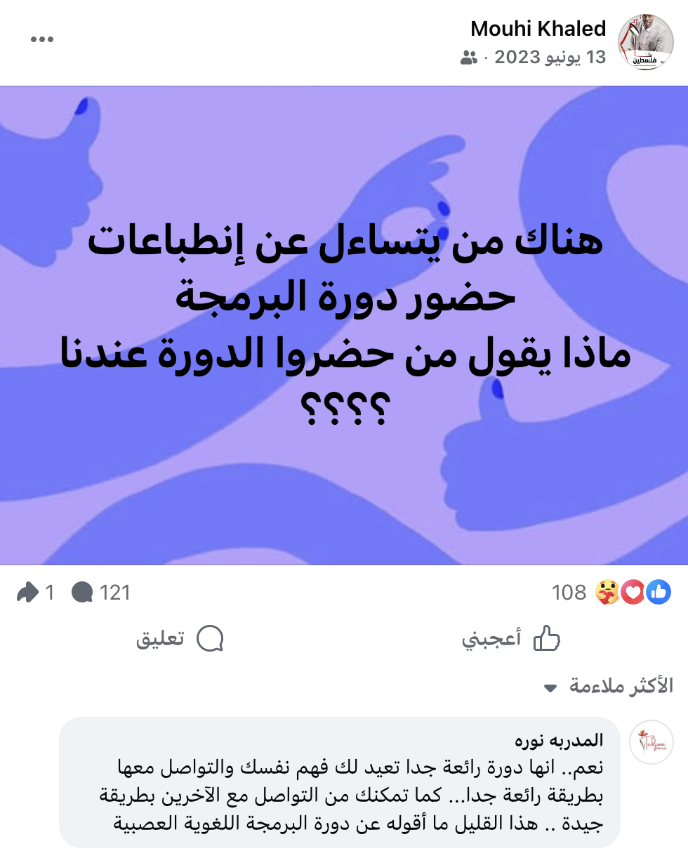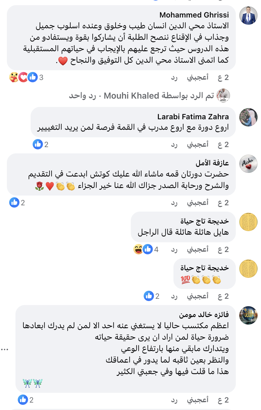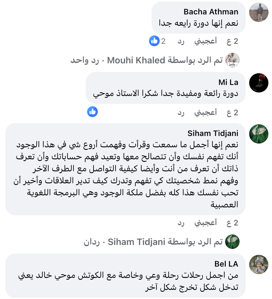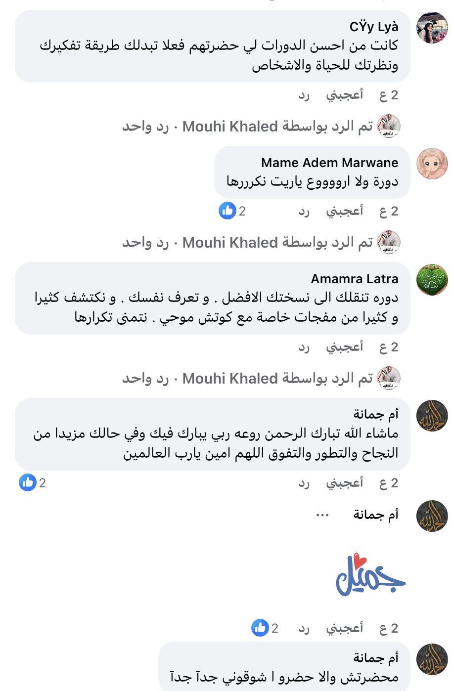 يمكنك ملاحظه انطباعات وتغييرات حقيقيه أخرى في حياة المشاركين في الدوره بصفحه الكوتش خالد موحي : في هذا الرابط لاحقا